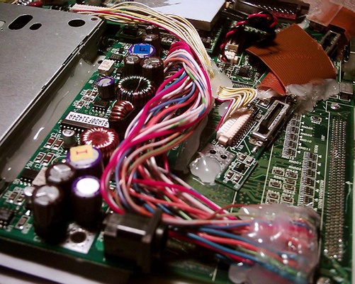 Hardware video glitch is brought about by purposely corrupted video memory of a device. Scrolling picture is never the same - subtle changes happen at clock-rate, producing unique images which never repeat.